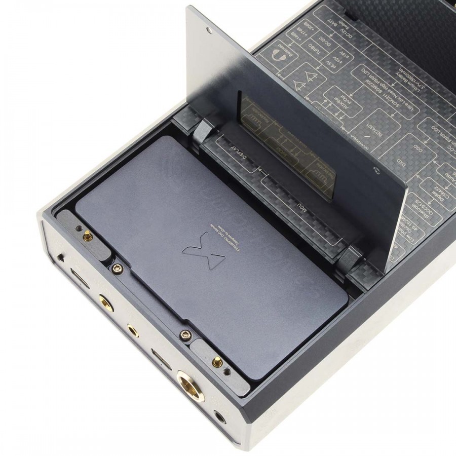 Une des particularités de l'amplificateur casque / DAC portable XD05 Pro est sa capacité à changer de composants pour une expérience d'écoute personnalisée en fonction des préférences de son utilisateur. En effet, la puce DAC ESS ES9039SPro ainsi que les deux AOP peuvent être changés facilement. Deux AOP supplémentaires L49720 sont par ailleurs inclus avec le XD05 Pro. Pour changer ces composants, ils vous suffit de dévisser deux petits capos situés sur la face inférieur du XD05 Pro. Les AOP sont montés en format DIP8 tandis que la puce DAC est montée sur un PCB revêtu d'une coque en aluminium. xDuoo a prévu de sortir prochainement différentes puces DAC compatibles avec le XD05 Pro.