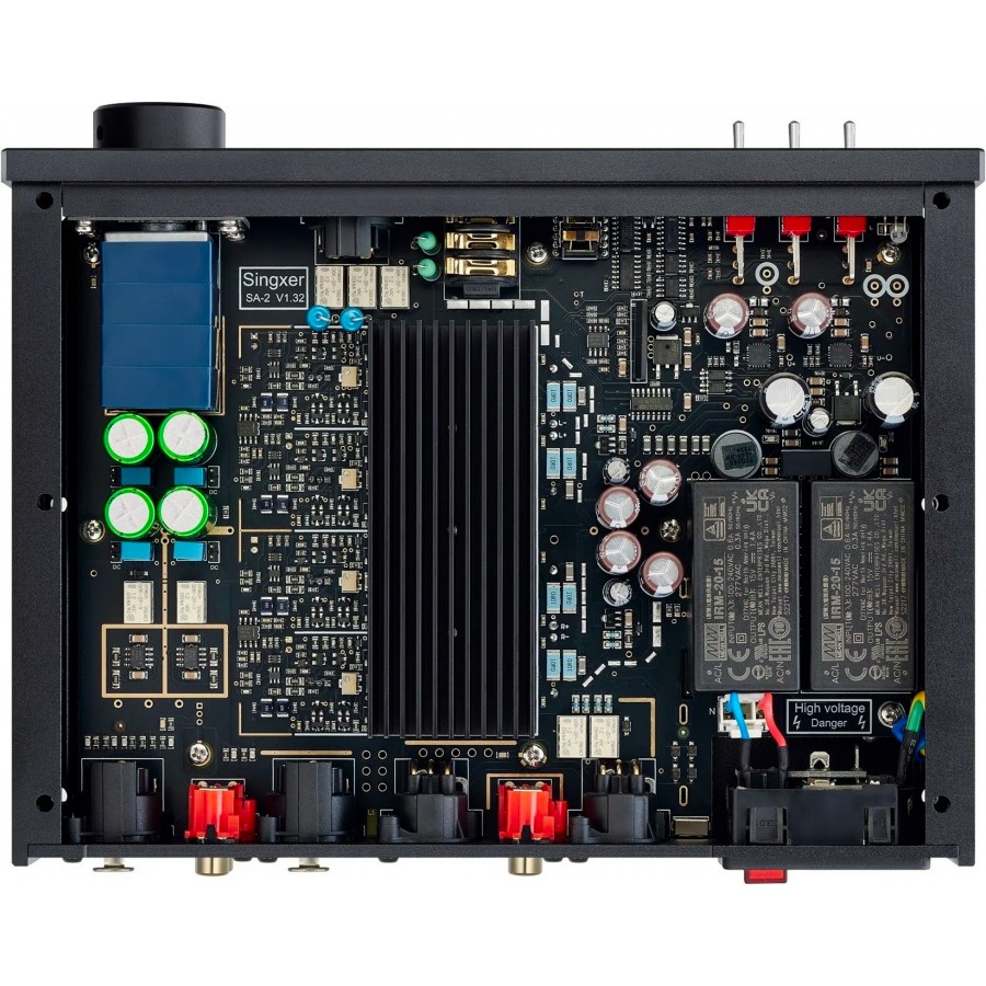 À l’intérieur du châssis, Singxer a entièrement repensé l’alimentation, la topologie du circuit et la gestion thermique : un bloc cuivre et un dissipateur en alliage d’aluminium assurent une meilleure évacuation de la chaleur, gage de fiabilité et de constance en écoute prolongée. Le SA-2 est un appareil entièrement analogique, sans microcontrôleur audio, ce qui limite les interférences numériques et privilégie une restitution pure.
