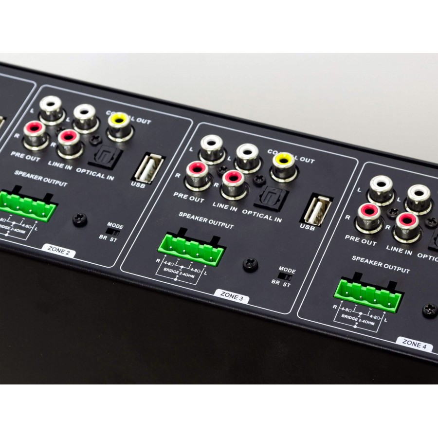 | Entrées par zone | RCA (2V RMS) USB-A (USB Host, max 1000 morceaux) Optique Toslink (PCM jusqu'à 24bit 192kHz) |