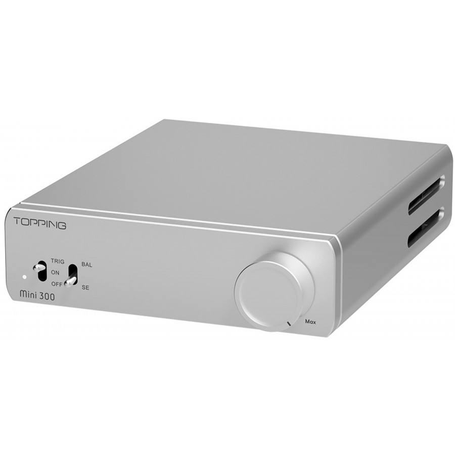 Le Topping Mini300 est un amplificateur stéréo compact délivrant 2x125 W sous 4Ω, conçu pour offrir une puissance maîtrisée dans un format réduit. Sa topologie Class D assure un haut rendement énergétique et une excellente stabilité thermique, tandis que la conception entièrement symétrique garantit une séparation rigoureuse des canaux et une réduction du bruit de fond.