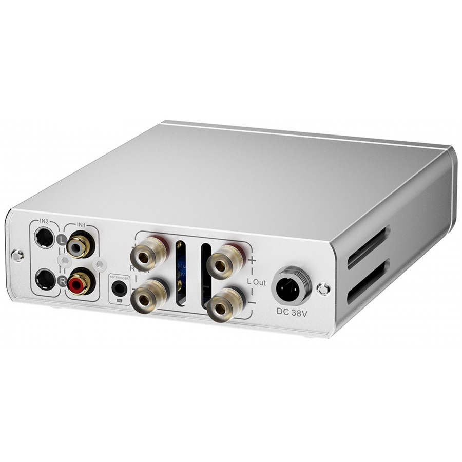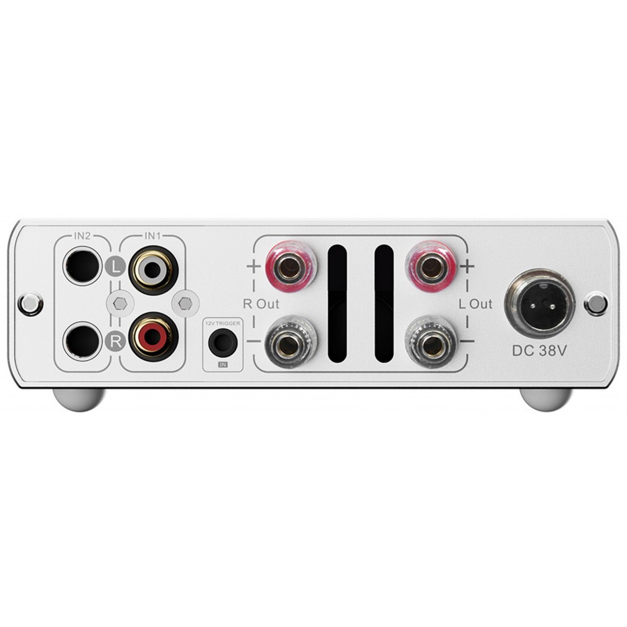 Le châssis en aluminium renforce la dissipation thermique et protège les circuits internes des interférences électromagnétiques. Un entrée trigger 12V facilite par ailleurs l’intégration du Mini300 dans un système audio ou home-cinéma.