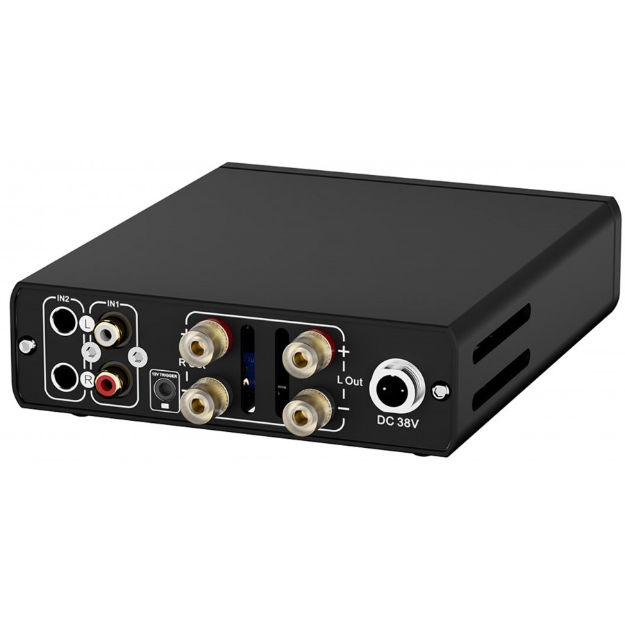 Le châssis en aluminium renforce la dissipation thermique et protège les circuits internes des interférences électromagnétiques. Un entrée trigger 12V facilite par ailleurs l’intégration du Mini300 dans un système audio ou home-cinéma.
