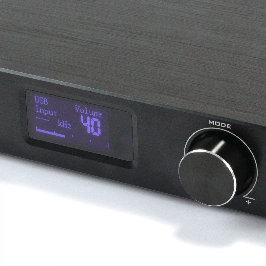 On retrouvera également dans cet amplificateur une puce USB CM6642, un ADC TI PCM1808 pour l'entrée analogique, une puce d'amplification Maxim MAX9722 pour la sortie casque et un récepteur Coaxial / Optique Toslink AKM AK4118.