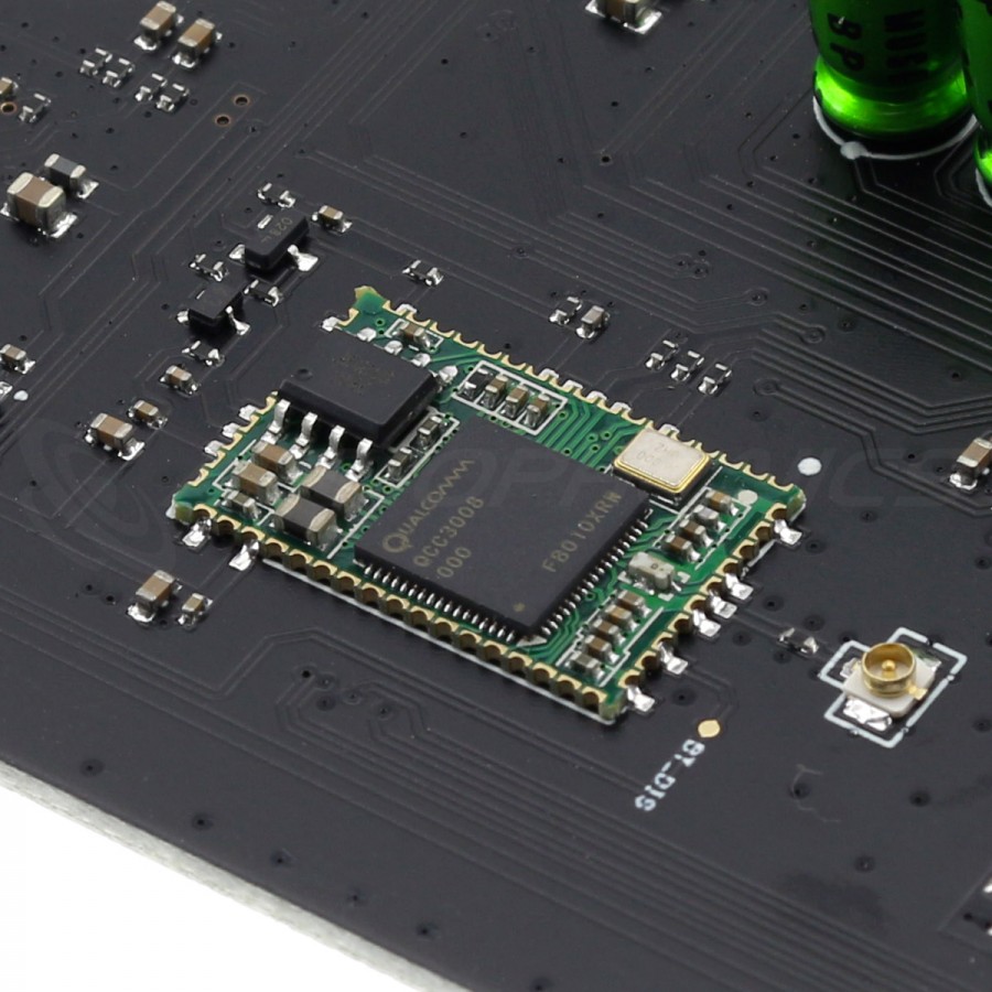 Le circuit d'amplification est basé sur une puce Infineon Merus MA12070. Celle-ci permet de développer une puissance conséquente de 2x50W sous 4Ω, tout en assurant une très faible distorsion, un excellent rendement et un système de protection complet.