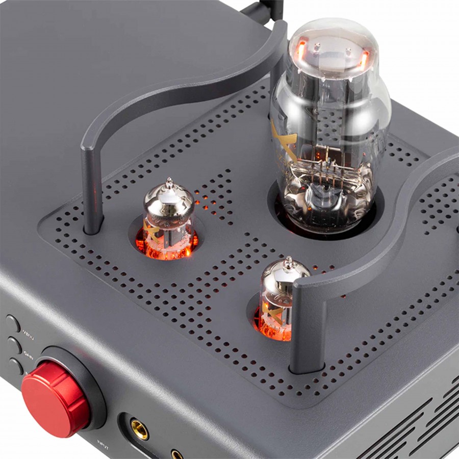 Avec le TA-32, xDuoo dévoile un DAC et amplificateur casque symétrique Class A reposant sur l'utilisation d'une puce de conversion numérique-analogique ROHM BD34301 ainsi que sur un tube 5U4G et deux tubes 12AU7. Ces composants audiophiles lui permettent de supporter des taux d'échantillonnage haute résolution jusqu'au PCM 32bit 768kHz, DSD512 et MQA via son entrée USB-B, mais également d'atteindre une puissance de sortie casque jusqu'à 3000mW sous 32 ohm. À cela s'ajoute le Bluetooth 5.1 grâce à une puce Qualcomm QCC5125 supportant de nombreux codecs : SBC, AAC, aptX, aptX LL, aptX HD et LDAC. Polyvalent, le TA-32 dispose de nombreuses entrées et sorties pour une intégration facile au sein de tout système Hi-Fi, que ce soit en tant que DAC ou amplificateur casque.