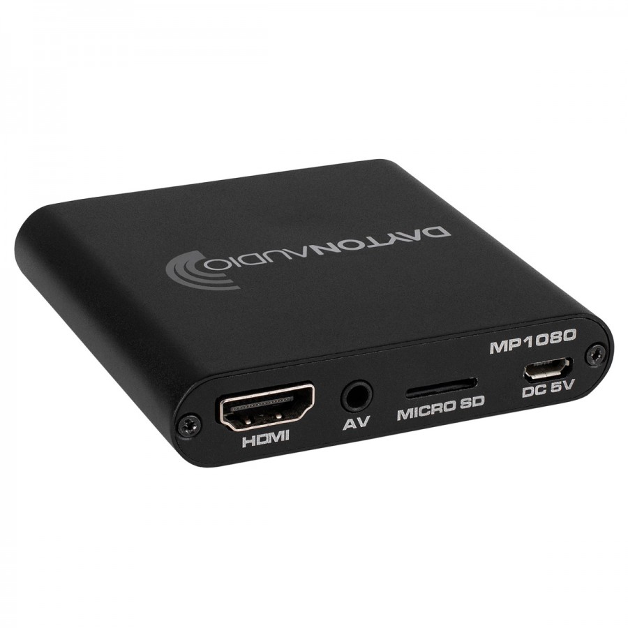 Le Dayton Audio MP1080 est un lecteur de fichiers ultra-portable supportant la lecture de films, musiques et photos en haute qualité. L'appareil est compatible avec les cartes SD/SDHC ainsi que les périphériques USB 2.0 comme des clés USB ou disques durs. Supportant un large panel de formats de fichiers, le MP1080 vous permet de profiter de vos contenus numériques en déplacements ou à la maison.