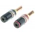 Ces borniers haut-parleurs de la marque Flagship Kimbers bénéficient d'une conception avec des matériaux de qualité. Leurs contacts sont en cuivre pur tandis que l'écrou de serrage est en laiton et leur corps en acier noir. L'ensemble offre un bornier HP robuste et à haute conductivité. Par ailleurs, leur esthétique offre une singularité appréciable pour quiconque souhaite des borniers originaux et différenciants. Ils acceptent les fiches banane, les fils nus ainsi que les fourches 8mm.