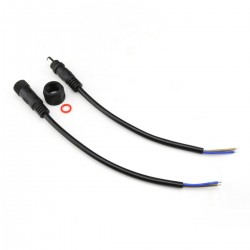 Ce set de câbles Jack DC 5.5/2.1mm permet d'effectuer un raccord totalement waterproof, grâce à un système à visser équipé d'un joint. Le produit se compose donc d'un câble avec connecteur Jack DC mâle et d'un câble avec Jack DC femelle, chacun se terminant par des fils nus. Idéal pour une installation en extérieure sensible aux intempéries.