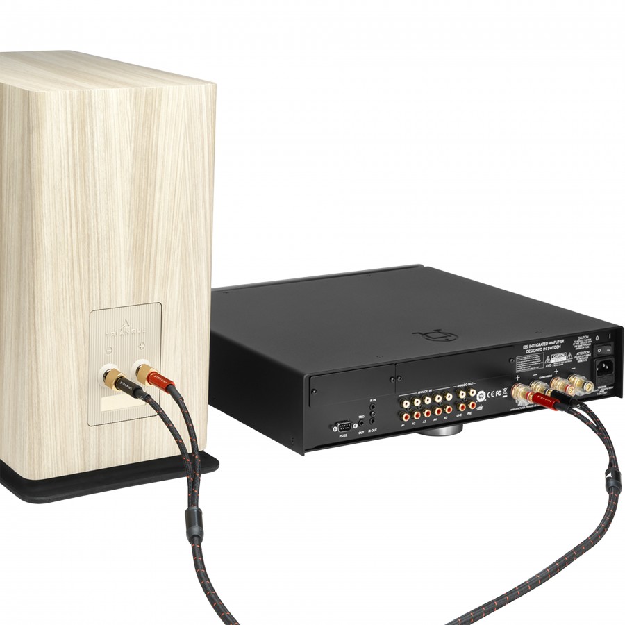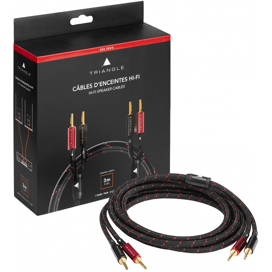 Ce câble d'enceintes Red de chez Triangle est un câble en cuivre OFC pur à 99.9% pour une conductivité du signal optimale et une restitution fidèle d'une grande précision. Il est pensé pour relier des enceintes passives à un amplificateurs audio. Pour cela, le câble est prémonté avec des fiches bananes BP450 plaqués or de 3.6mm intégrant une lamelle ressort assurant un maintien optimal dans les borniers.