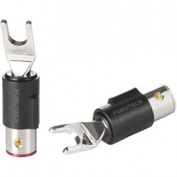 Ces adaptateurs pour câble HP permettent de transformer une fiche banane de 4mm en fourche pour bornier haut-parleur. Cela vous permettra de facilement adapter vos câbles banane à la connectique à fourche utilisée sur certains modèles d'enceintes et appareils Hi-fi....