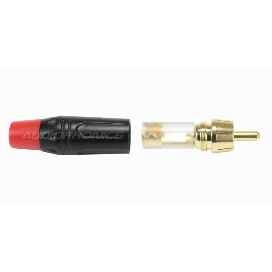 Connecteur RCA plaqué or avec connecteur interne étamé pour faciliter les soudures. Très bonne connectivité. Extérieur peint avec couleur détrompeur (noir ou rouge).