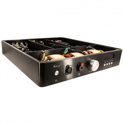 Les étages numériques reçoivent ainsi du courant grâce à 15 unités d'alimentation ultra haute vitesse et à faible bruit. Les étages de sortie quant à eux sont alimentés par 4 unités d'alimentation régulée fonctionnant en pure classe A. Cette construction permet à tous les étages de fonctionner à partir d'une alimentation claire et indépendante, une condition essentielle pour atteindre des qualités audio supérieures.