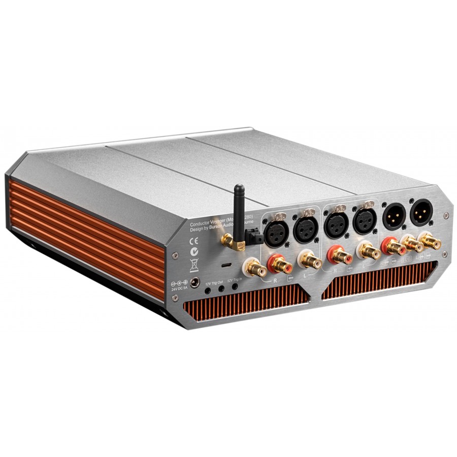 Avec le Conductor Voyager, Burson Audio propose un DAC, amplificateur casque et préamplificateur haut de gamme. Il intègre un DAC ESS9039PRO capable de traiter des flux PCM jusqu’à 32bits 768kHz et du DSD512 natif, soutenu par une interface USB XMOS et une section analogique discrète en double mono. Son amplification en classe A délivre jusqu’à 10W grâce à des transistors Onsemi MJE15032, assurant une compatibilité avec même les casques les plus demandeurs. Sa connectique comprend notamment le Bluetooth 5.0 compatible LDAC et aptX HD, ainsi qu’une sortie subwoofer dédiée pour une intégration polyvalente.