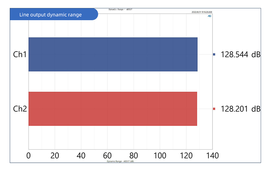 | THD+N | 0.00006% (-124dB) 0.000053% (-125.5dB)(A-Weighted) |
