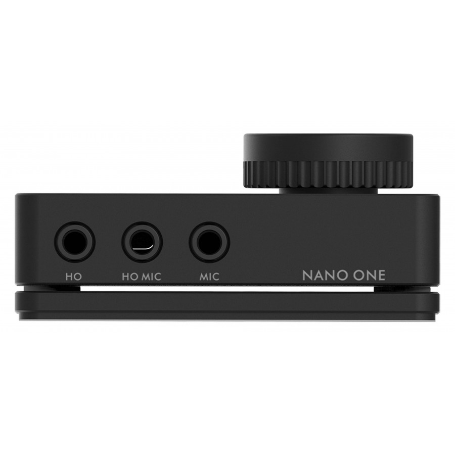 Le SMSL Nano One est un DAC portable spécialement conçu pour une installation bureau ou gaming. Il se base sur l'utilisation d'un DSP 16bit 48kHz, ce qui lui permet notamment de simuler une écoute 7.1 surround pour une écoute immersive. Côté connectique, on retrouve une entrée USB-C, une sortie casque jack 3.5mm, une sortie jack 3.5mm pour casque audio avec microphone et une entrée microphone jack 3.5mm. Cela lui permet de s'adapter à de nombreuses configurations. Le SMSL Nano One dispose par ailleurs de petits atouts tels qu'une belle vitre acrylique laissant les composants apparents, un système d'accroche magnétique lui permettant de se fixer à d'autres appareils par exemple ou encore un système d'annulation de bruit par IA pour le microphone.