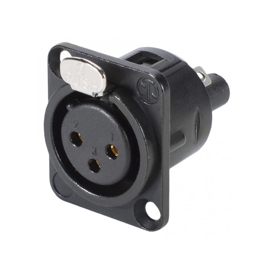 Neutrik a conçu et développé cette embase XLR femelle à visser, dotée de contacts plaqué Or.
