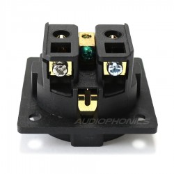 Magnifique prise murale Furutech avec contacts en Cuivre pur plaqué Or. Elle possède également des "griffes" pour être maintenue dans un emplacement mural. Corps en Nylon/Fibre de verre / Encadrement en ABS.