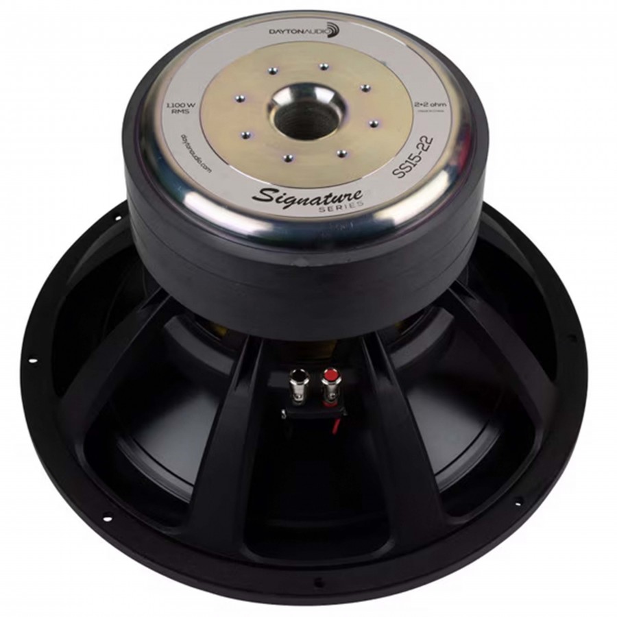 Avec le SS15-22, Dayton Audio présente un haut-parleur subwoofer de 38.1cm à double bobine. Conçu pour des applications à forte puissance, il associe une membrane en aluminium anodisé à un triple aimant optimisé par simulation FEA et une suspension à double spider pour proposer une puissance de sortie de 1100W RMS sous 4Ω sur une bande de fréquences allant de 20Hz à 400Hz.