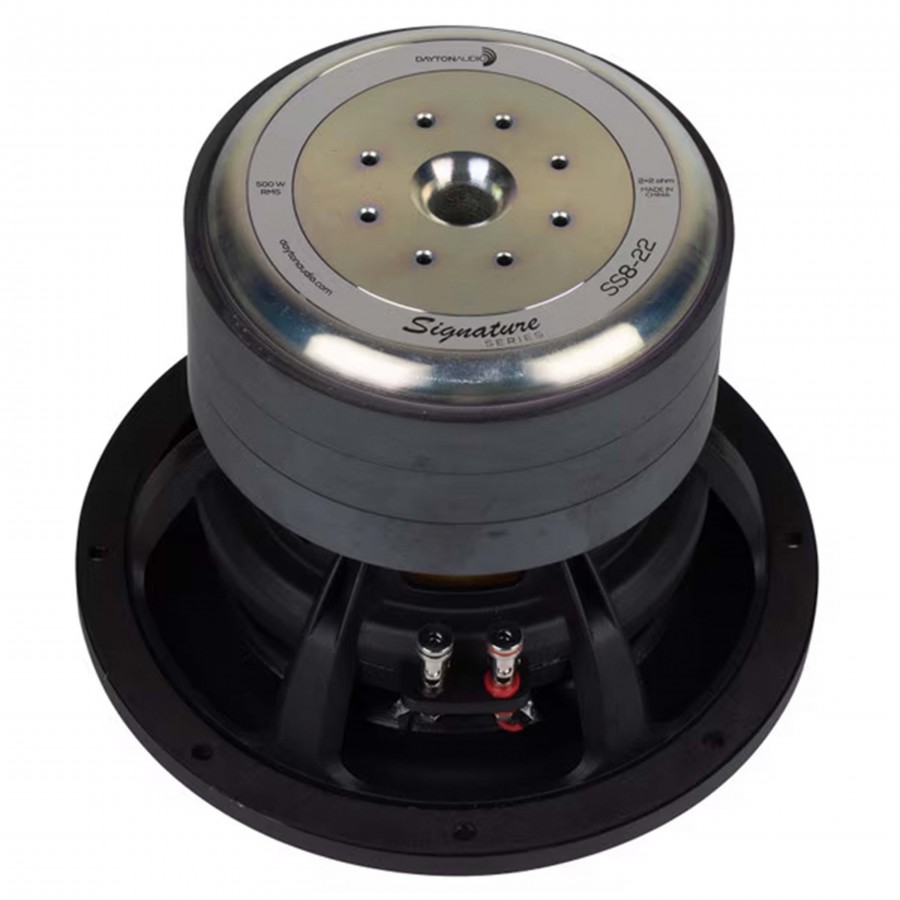 Avec le SS8-22, Dayton Audio présente un haut-parleur subwoofer de 20.32cm à double bobine. Conçu pour des applications à forte puissance, il associe une membrane en aluminium anodisé à un triple aimant optimisé par simulation FEA et une suspension à double spider pour proposer une puissance de sortie de 500W RMS sous 4Ω sur une bande de fréquences allant de 20Hz à 500Hz.