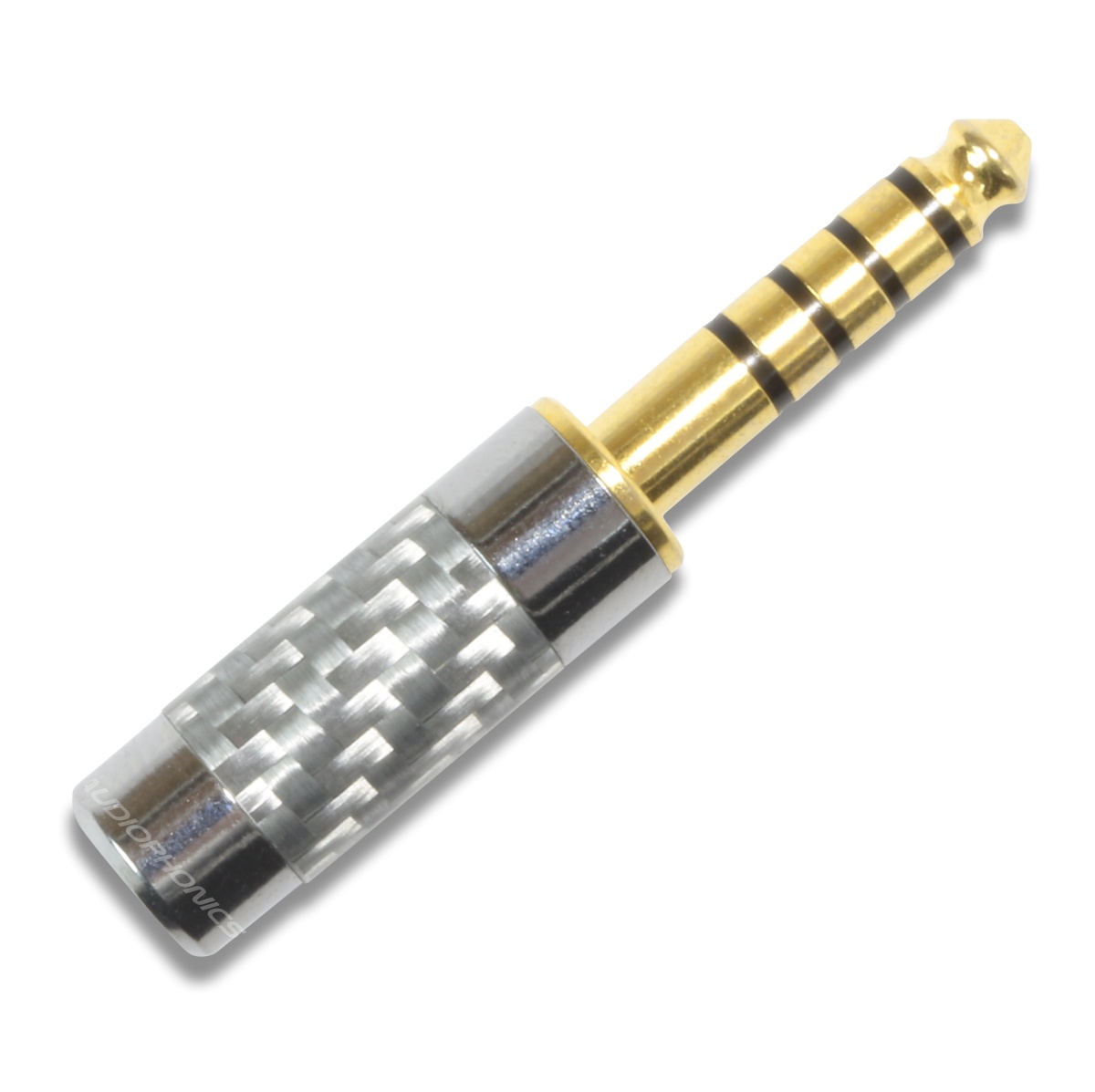 Ce connecteur Jack 4.4mm profite d'une finition carbone très esthétique. Sa construction intègre un connecteur laiton plaqué or avec capsule en métal peint. Ces derniers assurent une bonne conductivité ainsi qu'une résistance mécanique durable dans le temps.