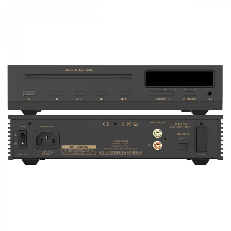 Le Shanling CD80 se présente comme un lecteur CD efficace avec DAC intégré. Fonctions qu'il effectue avec brio grâce à une architecture soignée et des composants de qualité, lui permettant d'offrir une belle qualité de lecture et décodage pour vous permettre de profiter au mieux de vos CD.