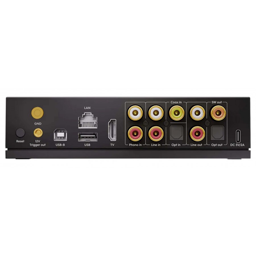 | Entrées | 1x USB-B 1x RCA 1x Phono RCA 1x HDMI eARC 1x Coaxial 1x Optique Toslink 1x USB-A Host Bluetooth |