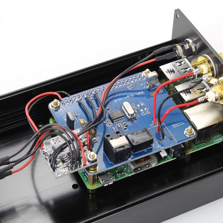 Ce boîtier 100% Aluminium reçois une carte mère Raspeberry Pi 3.0 avec une interface digitale Digipi+ à faible jitter que dispose d'un transformateur d'isoltation audio Pulse PE-65612 ainsi que tous les composants nécessaires. Le RaspDIGI est développé et assemblé directement dans nos ateliers.