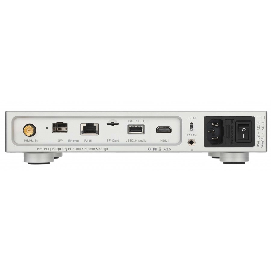 Le LHY Audio RPI Pro est un streamer basé sur le célèbre module Raspberry Pi CM4 intégrant un système d'exploitation RoPieee pour le support de nombreux protocoles de streaming : Roon Bridge, Airplay, Spotify Connect, Tidal Connect, Squeezelite, UPnP, NAA. Moode OS est également disponible pour le RPI Pro si souhaité. À cela s'ajoute un système d'horloge SC-OCXO à faible bruit pour un traitement ultraprécis du signal. Côté connectique, on retrouve une sortie vidéo HDMI, une sortie USB 2.0 isolée, des connecteurs SFP et RJ45 ainsi qu'une entrée d'horloge externe 10MHz sur BNC et un slot carte TF.