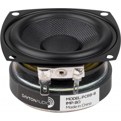 Le Dayton Audio PC68-8 est un haut-parleur large bande doté d'une membrane en poly composite (fibre de verre tissée) amortie, d'une suspension en caoutchouc et d'un moteur à haute énergie. Offrant d'excellentes performances sur tout son spectre, une réponse hors axe contrôlée et un rendement élevé, ce haut-parleur fournit une puissance impressionnante pour sa taille. Parfait pour une utilisation dans des line arrays, des barres de son, des enceintes portables ou même pour du car audio. Le Dayton Audio délivrera ainsi un son haute fidélité et une faible distorsion pour des applications compactes, le tout pour un rapport qualité-prix exceptionnel.