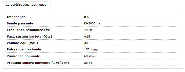| Diamètre Haut Parleur (mm) | 165.0 |
