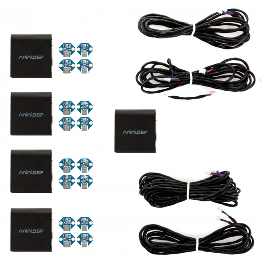 Le miniDSP UMIK‑X en configuration UMA‑XL est un système de mesure acoustique multicanal et multipoint conçu pour l’analyse synchronisée de champs sonores étendus, reposant sur un réseau distribué de microphones MEMS omnidirectionnels interconnectés via une liaison USB‑A2B. Chaque module UMA‑XL intègre quatre capsules Knowles MEMS à faible distorsion, haut niveau de pression admissible et rapport signal/bruit élevé, déployées sous forme de micro‑modules physiquement séparés, permettant de constituer des ensembles de 4 à 16 microphones actifs tout en conservant une résolution de 24 bits en 44.1 ou 48kHz. Cette architecture s’appuie sur le protocole Analog Devices A2B, qui assure le transport simultané de l’audio multicanal et de l’alimentation sur un câble unique jusqu’à 40 mètres, garantissant une synchronisation temporelle stricte malgré la dispersion spatiale des points de mesure.