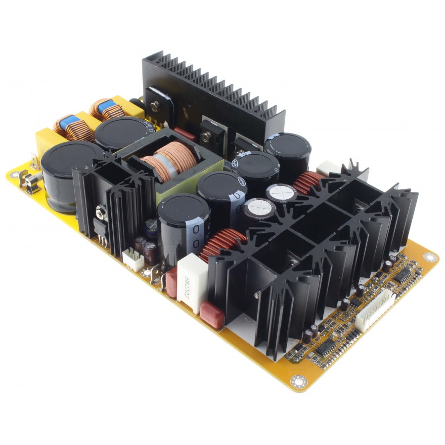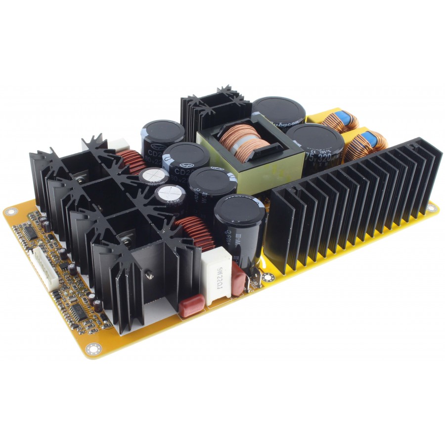 Le Connex IRS2400SMPS est un module amplificateur Class D avec alimentation intégrée. L'étage d'amplification se base sur un contrôleur IRS2092S, permettant de délivrer une puissance de 2x 400W sous 4Ω (THD < 0.1%) et de 2x 225W sous 8Ω (THD < 0.1%) avec un rendement élevé de plus de 94%.
