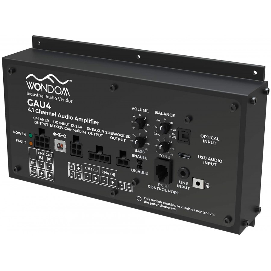 Le AA-AS43112 GAU4 de Wondom est un module d’amplification s'adressant aux intégrateurs recherchant une solution d'amplification multicanale compacte et polyvalente. Conçu initialement pour les applications gaming et arcade, ce module 4.1 basé sur plusieurs puces TPA3116 de Texas Instruments trouve également sa place dans les configurations home cinéma compactes, les installations sim racing ou les systèmes de monitoring nécessitant une gestion séparée des graves. La combinaison d'une connectique exhaustive, d'un DSP programmable et de contrôles physiques verrouillables en fait une plateforme d'amplification adaptable aux contraintes variées des environnements professionnels comme des projets DIY exigeants.