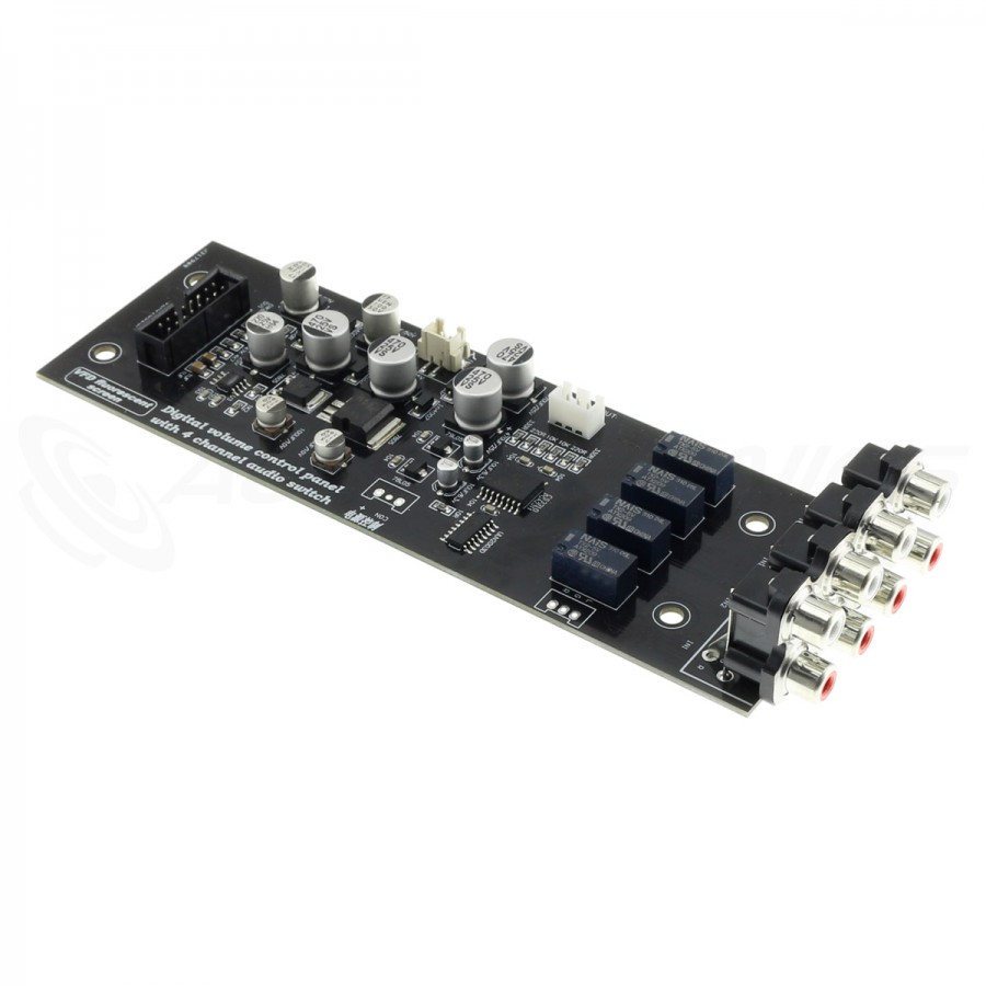 Ce module se compose d'un sélecteur de sources disposant de 4 entrées RCA stéréo et d'une sortie analogique sur connecteur XH 2.54mm, ainsi que d'un afficheur VFD. La gestion des flux audio est confiée à une puce Cirrus Logic CS3310 16bit, assurant une faible distorsion. L'afficheur peut lui afficher 9 chiffres et un potentiomètre à sa droite permet d'allumer / éteindre le module, de sélectionner un source active ou d'ajuster le niveau de volume. La télécommande livrée permet également d'accéder à distance à ces fonctions.