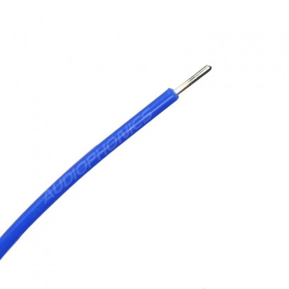 Le départ, à réception, sa gaine diélectrique PTFE bleue est magnifique, bien mieux en vrai qu'en photo, d'une régularité polie sans faille !!! Le conducteur en argent monobrin, sésame de ce fil de câblage, est très souple.