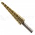 Ce foret étagé à 9 niveaux, de 4mm à 12mm, et conçus en acier HSS-6542 permet de percer des matériaux tels que le fer, l'aluminium, l'acier carbone ou le plastique. Il dispose d'une queue cylindrique avec trois méplats pour un serrage rapide et efficace.