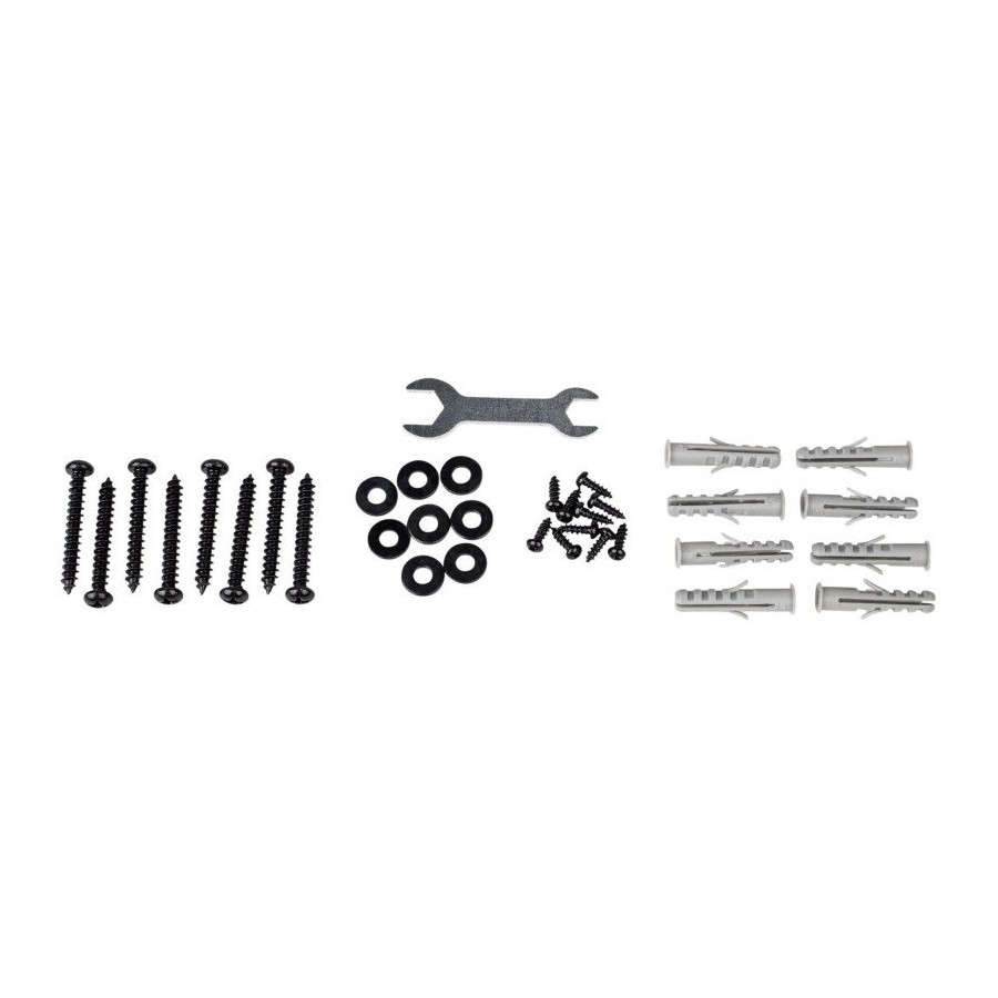 L'installation requiert le matériel élémentaire et sans mauvaise surprise : une perceuse équipée d'un foret de 3.8 mm, un foret maçonerie 8mm, un tournevis et un niveau à bulles. Ces fixations sont compatibles avec des surfaces bois & briques.