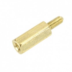 Ces entretoises sont faites de laiton et disposent d'un embout mâle et d'un embout femelle. Leur pas de vis est de 2.5mm pour une longueur de 6mm côté mâle et 25mm côté femelle correspondant à la longueur du corps.